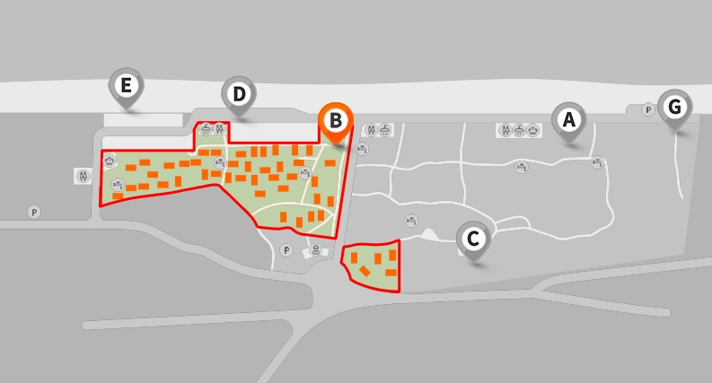 - 캠핑장 B존은 일반형데크 44면, 대형데크 2면 총 46면을 보유하고 있습니다. - 캠핑존 및 자동차 캠핑존 이용 고객은 모든 캠핑 장비를 준비해야 합니다. (솔향기 캠핑장에서는 장비 대여를 제공하지 않습니다.) - 모든 캠핑장 이용 고객은 관리 사무실에서 체크인을 완료한 후에 입장이 가능합니다. - 지정된 공간 외의 장소에서 캠핑은 허용되지 않습니다. - 모든 시설에서는 전기 사용이 가능합니다. |