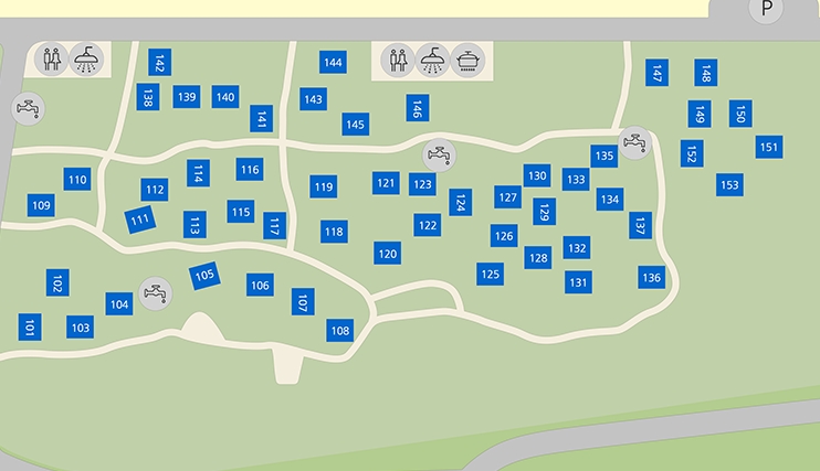 캠핑존 121면, 카라반존 9면, 자동차캠핑존 10면, 글램핑존 10면
